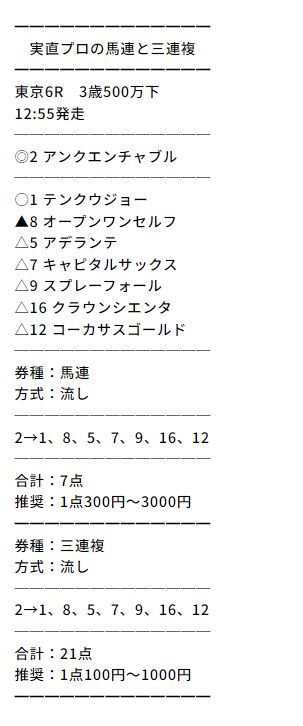 無料情報の買い目では高配当ほとんど出ないし