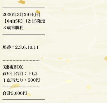 馬券代は1点500円の総額5000円