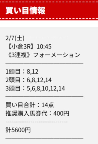 買い目点数が少ないうえに馬券代も小遣いの範囲内でイケる!