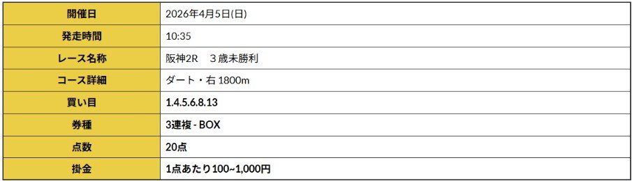 5日(日)の無料予想は、買い目を見た時点で