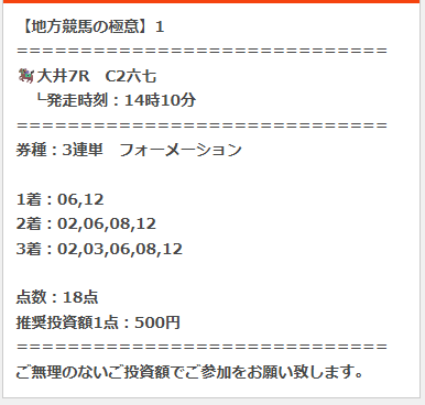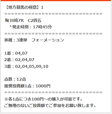 2月4日(水)の地方競馬の極意購入しました!