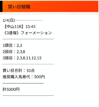 買い目点数1点(5000円)